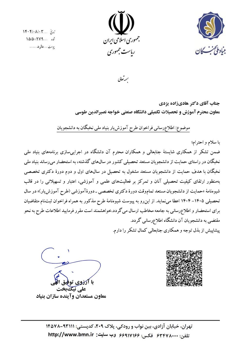 اطلاع رسانی فراخوان طرح آموزش یار